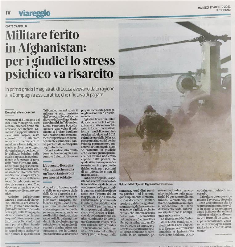 Disastro ferroviario di Viareggio del 29.06.2009, indennizzo assicurativo attentato terroristico